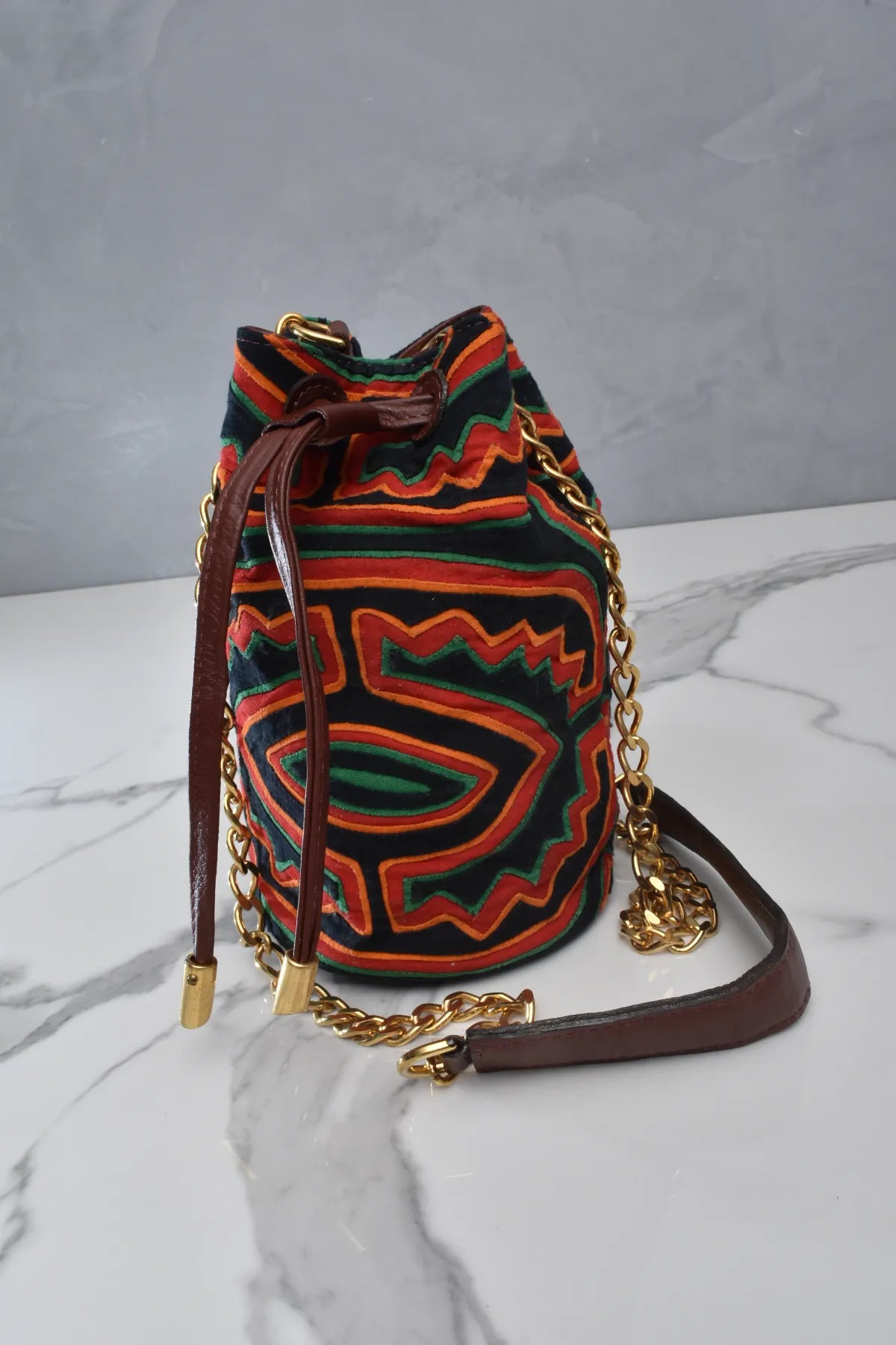 Elaboración 100% artesanal una obra de arte fabricada por manos de indígenas de la comunidad Gunadule en Colombia, en donde las mujeres con hilos agujas y trazos de manera delicada crean las molas; su tejido ancestral. Puedes encontrar algunos imperfectos ya que es completamente hecha a mano. Para dar vida a una pieza única e ideal para complementar nuestros outfits. Nuestra Kuna, es hecha en mola con cuero, su forro interno en gamuza. Cuenta con una asa en cadena.
